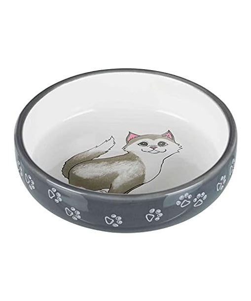 Trixie Cat White/Grery Flat Ceramic Bowl with Printed Cat Paw 0.30 Litre - 15 cm